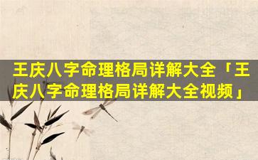 2、王 🐧 庆八 🐬 字命理格局详解大全视频