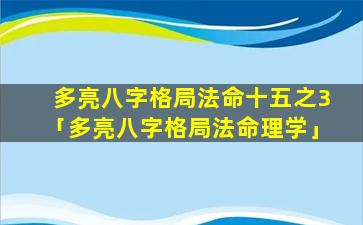 多 🦁 亮八字格局法命十五之3
