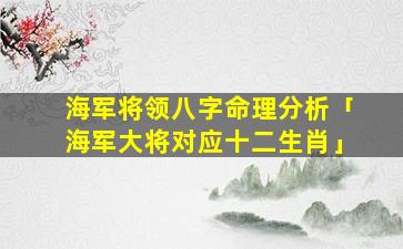 有几个关 🦉 于海军大将对应十二生肖 🐘 的说法: