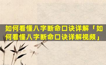 2、如 🐧 何看 🐛 懂八字断命口诀详解视频