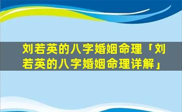总体来看,刘,若,英,的,婚姻命理吉凶参半夫君事业有成财运亨通但感 🦋 情上容易有波折需要注意经营维系婚姻关系。