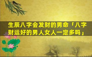 2、八字财运好 🌹 的男人女人 🐯 一定多吗