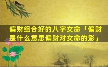 3、偏财组合好的 🐵 八字女命好不好 🐦