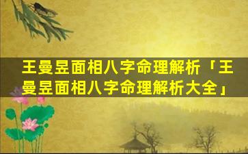 1、王 🌷 曼昱面相八字 💐 命理解析