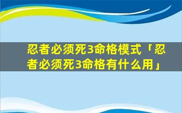 增加忍具属性:某些命格可以提升特 🐠 定忍具的属性提升忍具的,伤害或效果。