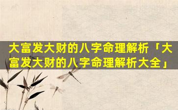 1、大富 🦍 发大财的八字命理解析
