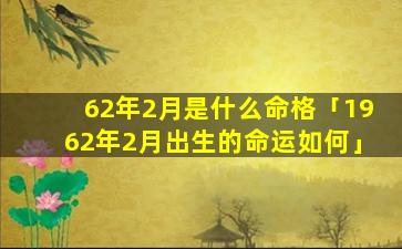 2、1962年2月出生的 🌹 命运 💐 如何?