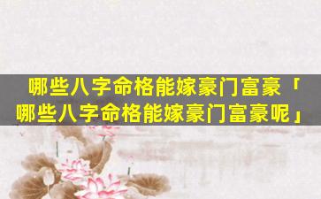 2、哪些 🐞 八字命格能嫁豪 🐯 门富豪呢