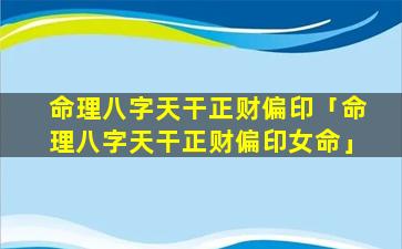 八字 🦄 命理中“天 🐵 干正财偏印”的 🌳 含义