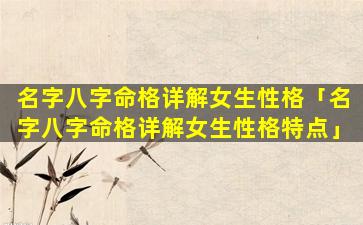 2、名字八字命格 🐧 详解女生 🐠 性格特点
