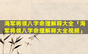 1、海军将领 🐦 八字命理解 🌸 释大全