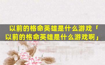 光明之舟2、以前的格命英 🐅 雄是什么游戏啊