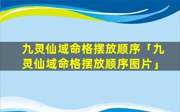 九灵仙域 🐅 命格摆放顺 🦍 序 🦄 图片