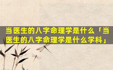 3、当医生的八字命理学 🐛 是什么专 🌲 业