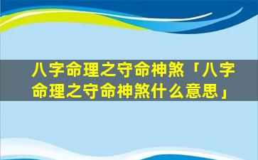 2、八字命理之守命神煞 🕷 什么意思