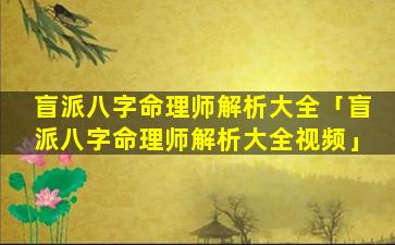 2、盲派八字命理师解析大全视 🕷 频 🌵