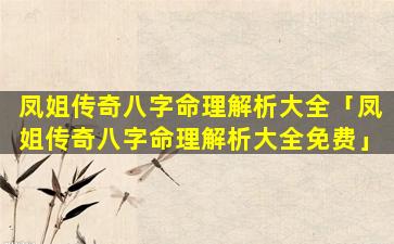 3、凤 🦊 姐传奇八字命理解析大全视频