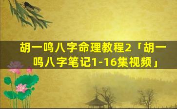 1、胡一鸣八字 🐦 命理教 🌾 程2