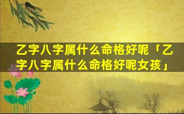 3、乙 🐅 字八字属什么命格好呢男 🦆 孩