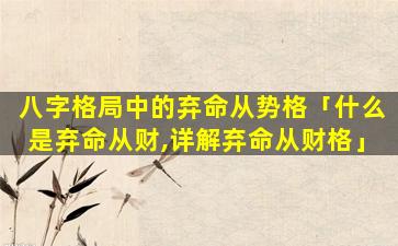 1、八字格局中的 🌼 弃命从势 🦋 格