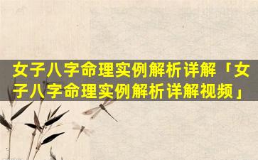 3、女 🍁 子八字命理实例解析详 🐛 解大全