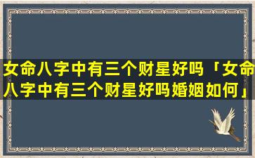 2、女命八字中有三 🌻 个财星好吗婚 🌺 姻如何