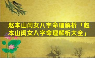 3、赵本山闺女八字 💐 命理解析视频 🐯