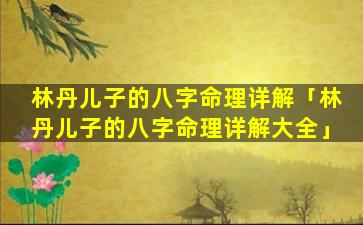 2、林 🐛 丹 🌾 儿子的八字命理详解大全