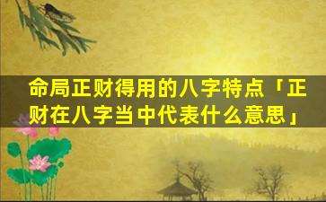 命局正 🐕 财 🐵 得用的八字特点 🦄