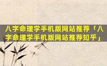 2、八字命理 🕷 学手机版网站 🐅 推荐知乎
