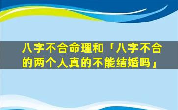 “八字不合命理和”这句话是基于八字算命的说法,指,两个人的八字相匹配程度不高可能会导致婚姻或其他关 🪴 系不顺利。