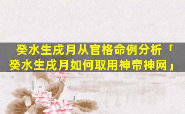 1、癸水生 🐅 戌月从官格命例 🐅 分析
