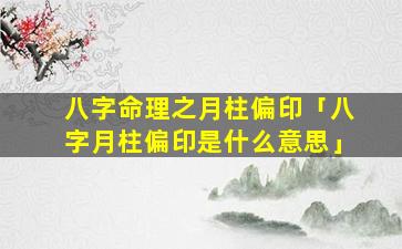 月柱偏印月柱是指出生年月干支中的月份 🦁 月柱。偏印的人,性。格和运势都会受到 🌴 偏印的影响