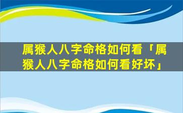 1、属 🐒 猴人八字命格如何 🌵 看