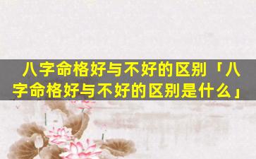 2、八字命格好与不好的区别 🕷 是什 🌿 么