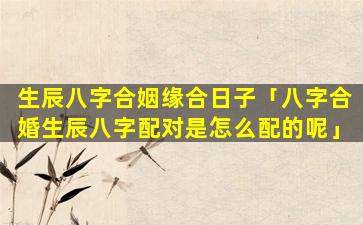 1、生辰八字合 🌵 姻缘合日子