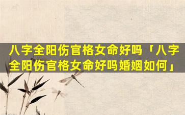 2、八字全阳伤官格 🌷 女 🌳 命好吗婚姻如何