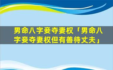 2、男命八字妾夺妻权但 💐 有善待丈夫
