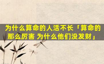 2、算命的 🦍 那 🐛 么厉害 为什么他们没发财