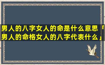 1、男人的八 🐴 字女 🌲 人的命是什么意思