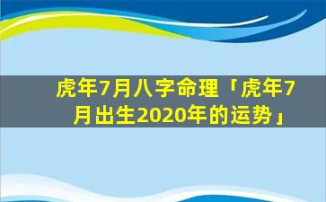 整体运势2020年7月出生的虎年运势呈 🌵 现起伏不定之势年。初吉星高照,事,业。有,成,财运,亨。通,但 🐋 年,中运势,下。滑须防小人作祟事业易受阻碍财运亦不顺年末运势回升有贵人相助事业重振旗鼓财运有所改善