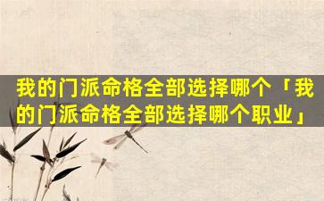 2、我的门 🦋 派命格全部选择哪个职业
