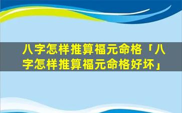 八字推算福元命格好坏 🐎 的方法 🦅 :
