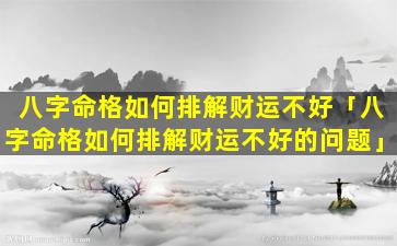 3、八字命格如何排解 🐧 财运 🌳 不好的情况