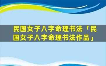 民 🐟 国女子八字命理书法,融,合,了,传统命理学和书法艺术不仅具有预测命运的功能也体现了民国女子对美好生 ☘ 活的向往与祈盼成为了一份独特的文化遗产。
