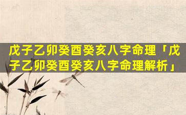 2、戊子 🐱 乙卯癸酉癸亥八字命理解析