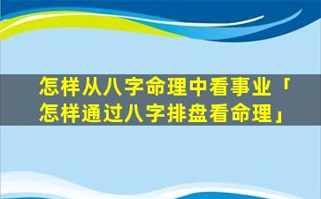1、怎样从 🪴 八 🐘 字命理中看事业