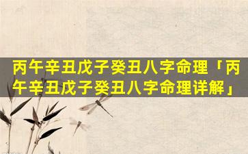 2、丙午辛丑 🌷 戊子癸丑八字命理详解