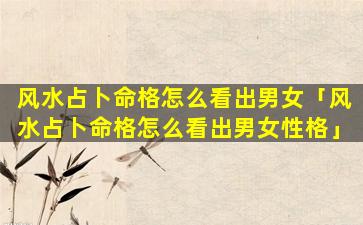 2、风水占卜命格怎 🐞 么看出男女性格 🦁