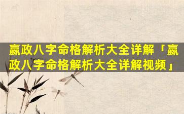 嬴 🌷 政 🐟 八字命格详 🌷 解
